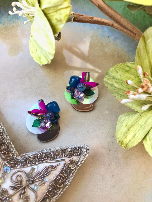 ※ご注文を頂いてからの作製になります。おおよそ4日〜7日で発送致します。 ※ご購入時は必ず《購入時の注意点》をお読みになり、ご納得の上でお手続き下さいますようお願い申し上げます。 ◎天然石の独特な色の深みとたくさんのビーズたちの濃淡を楽しんでください。秋の実りのような深い色合いを感じるピアスです。 【素材】 メッキ金具 チェコビーズ 天然石 シードビーズ ラインストーン スパンコール アクリルカボション 【サイズ】 縦横約2.5cm×3cm 【送料】クリックポスト185円 全国一律 ※離島は別途プラス料金 ※ご注意事項※ ⚪︎金具の部分はメッキを使用しておりますので、金属アレルギーの方はご購入をお控えください。 ⚪︎アレルギーに対してはピアスの方はチタン製のポストを、イヤリングの方にはニッケルフリーのイヤリング金具をご用意しています。別途商品ページから金具をカートに入れてお手続き下さい。 ⚪︎メッキ金属は汗や年月の経過により変色することもございます。ご了承の上ご購入お願い致します。 ⚪︎既製品のような強度はございません。優しくお取り扱い下さい。 ⚪︎お支払いはご注文から5日以内にお済ませくださいますようお願い申し上げます。