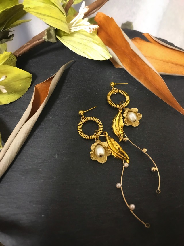 『ネジばねイヤリングへの変更可能』 ※ご注文を頂いてからの作製になります。おおよそ4日〜7日で発送致します。 ※ご購入時は必ず《購入時の注意点》をお読みになり、ご納得の上でお手続き下さいますようお願い申し上げます。 繊細なひねりパーツが大人の女性を演出。お花のパーツ で可愛らしさもプラス(*´꒳`*) 【素材】 メッキ金具 メタルパーツ シュガーパール アクリルビーズ 【サイズ】 長さ7cm 【送料】クリックポスト180円 全国一律 ※離島は別途プラス料金 ※ご注意事項※ ⚪︎金具の部分はメッキを使用しておりますので、金属アレルギーの方はご購入をお控えください。 ⚪︎メッキ金属は汗や年月の経過により変色することもございます。ご了承の上ご購入お願い致します。 ⚪︎既製品のような強度はございません。優しくお取り扱い下さい。 ⚪︎お支払いはご注文から5日以内にお済ませくださいますようお願い申し上げます。