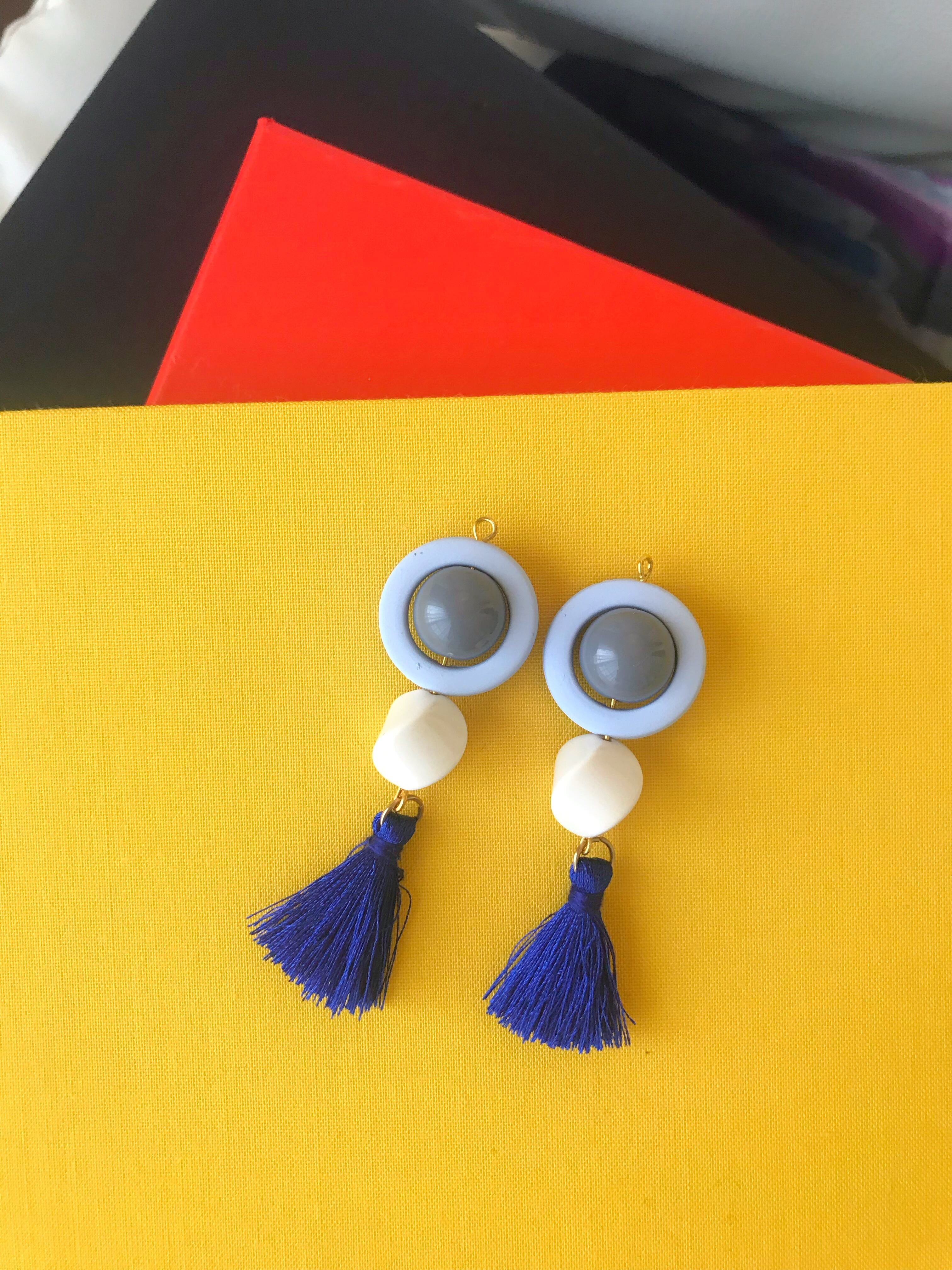 カラベラシリーズのタッセルピアスです!カラベラとはメキシコの死者の日のお祭りをいい、お祭りに出てくるスカルは独特な風合いとカラフルな色づかいが特徴的です!そんなカラベラの鮮やかな色づかいをイメージして作ったピアスです(*´꒳`*)