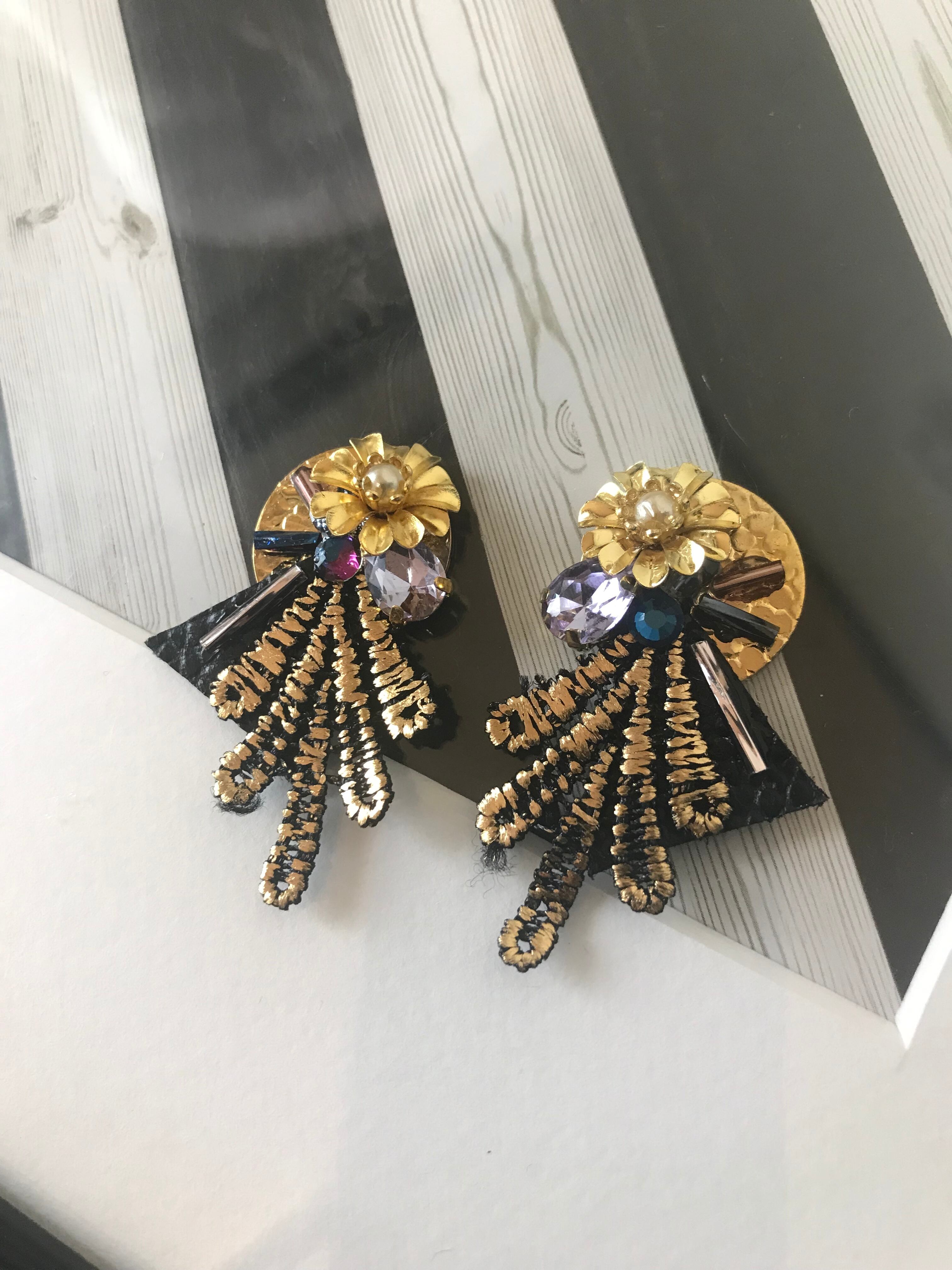 レザーと刺繍のお花ピアス1480